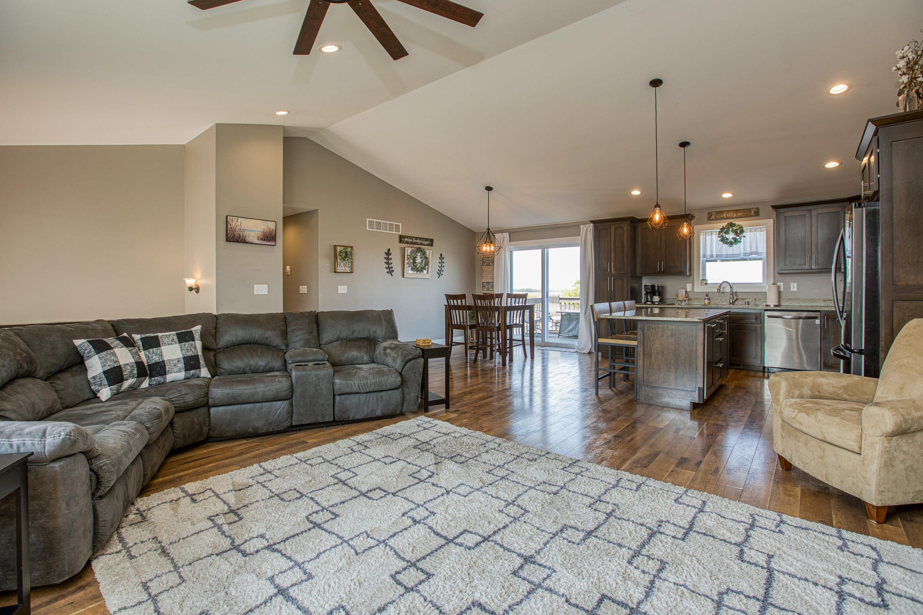 Built in 2017, this beautiful split-level home offers modern style, spacious living, and thoughtful design throughout. The main level features an open-concept living, dining, and kitchen area with a large center island, smoky stainless appliances, and quartz countertops. The dining room opens to an oversized deck, perfect for entertaining. All three bedrooms are on the main level, with the primary suite offering a private bath and walk-in closet. The other two bedrooms share a full bath. The lower level includes a huge family room, a third full bath, laundry area, and access to the attached two-car garage. This move-in ready home blends comfort, functionality, and style—perfect for anyone looking for space to live and grow.